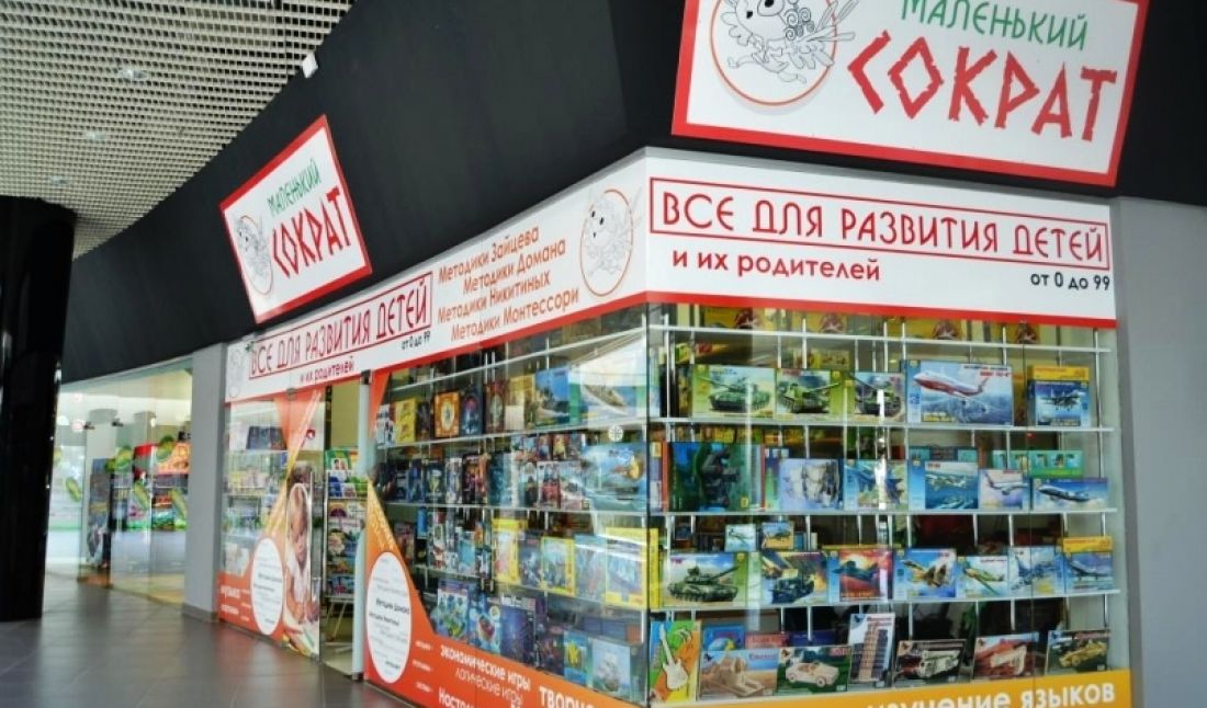 «Маленький Сократ» — интернет-магазин и сеть розничных магазинов, в которых представлены развивающие игрушки, книги и канцелярия. Сеть на сегодня насчитывает в Украине 38 магазинов средней площадью 20 кв. м, которые открыты по франчайзингу. Только один из них собственный. Практически все магазины располагаются в ТРЦ.