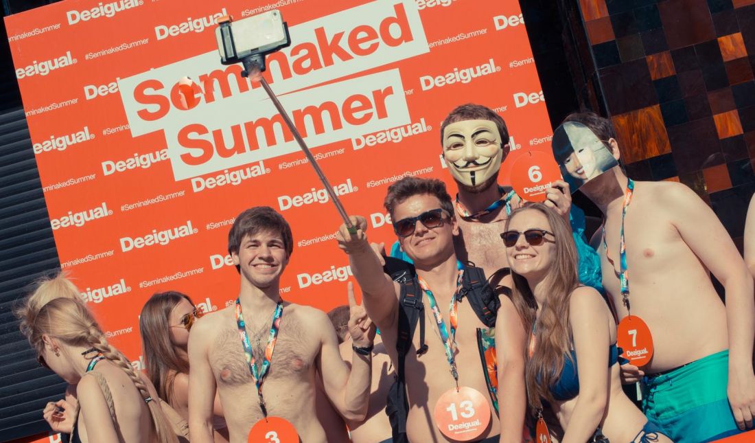 — Desigual — это международный бренд с богатой историей. Компания проводит Seminaked Party в разных странах мира, и акция привлекает к себе внимание большого количества людей. Существуют разные вариации проведения: просто Seminaked Party, Seminaked in Red и забег Colour Run в Барселоне. В 2015 году забег на 4 км в Барселоне собрал 10 000 участников. Люди бежали полураздетыми и разбрасывали цветной порошок, как на праздниках в Индии.
