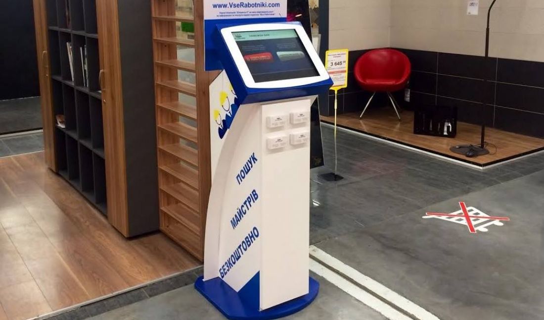 Информационно-справочные терминалы — это новый проект украинского интернет-ресурса поиска строителей VseRabotniki.com. Любой покупатель может узнать информацию о расценках на все строительные работы в Украине и найти мастера прямо в магазине. Терминал работает по принципу сайта «Все работники»: пользователь может заказать услугу мастера, которая сразу попадает в перечень минитендеров сайта, и получать предложения от зарегистрированных мастеров.