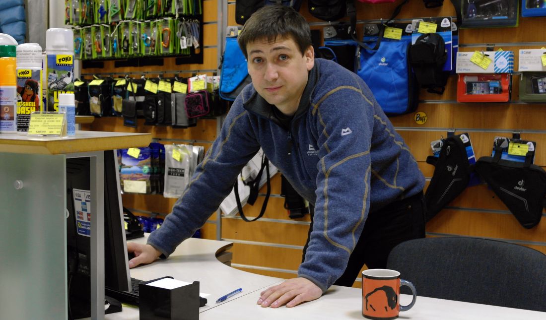 С Максимом мы встречаемся в новом магазине «Каприкорн» в центре Киева. Магазин открылся всего неделю назад, в нем светло и пахнет новыми вещами. На вешалках много туристического снаряжения, обуви, пуховой и горнолыжной одежды. Продавцы-консультанты, узнав причину моего визита, спрашивают у директора, где его костюм и галстук. Дудник, не смутившись, отшучивается: «Там же, где и кабинет».