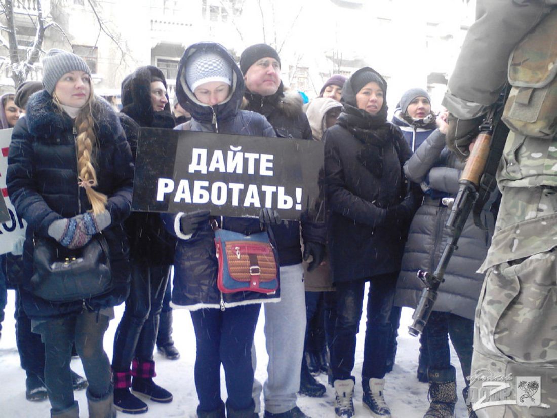 Более полусотни сотрудников магазинов вышли с плакатами такого содержания: «Нет произволу» и «Дайте работу».
