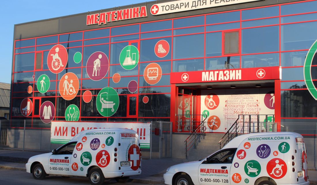 — «Медтехника+» насчитывает 12 розничных магазинов в Киеве. Один из них — самый большой в Украине, расположен на Столичном шоссе, его площадь составляет 400 кв. м. Остальные разбросаны по всему городу так, чтобы в каждом районе было удобно купить необходимые медицинские изделия.