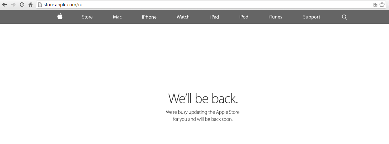 "В связи с чрезвычайно резким колебанием курса рубля наш российский онлайн-магазин в настоящий момент закрыт для пересмотра цен", – сообщил РБК представитель Apple.
