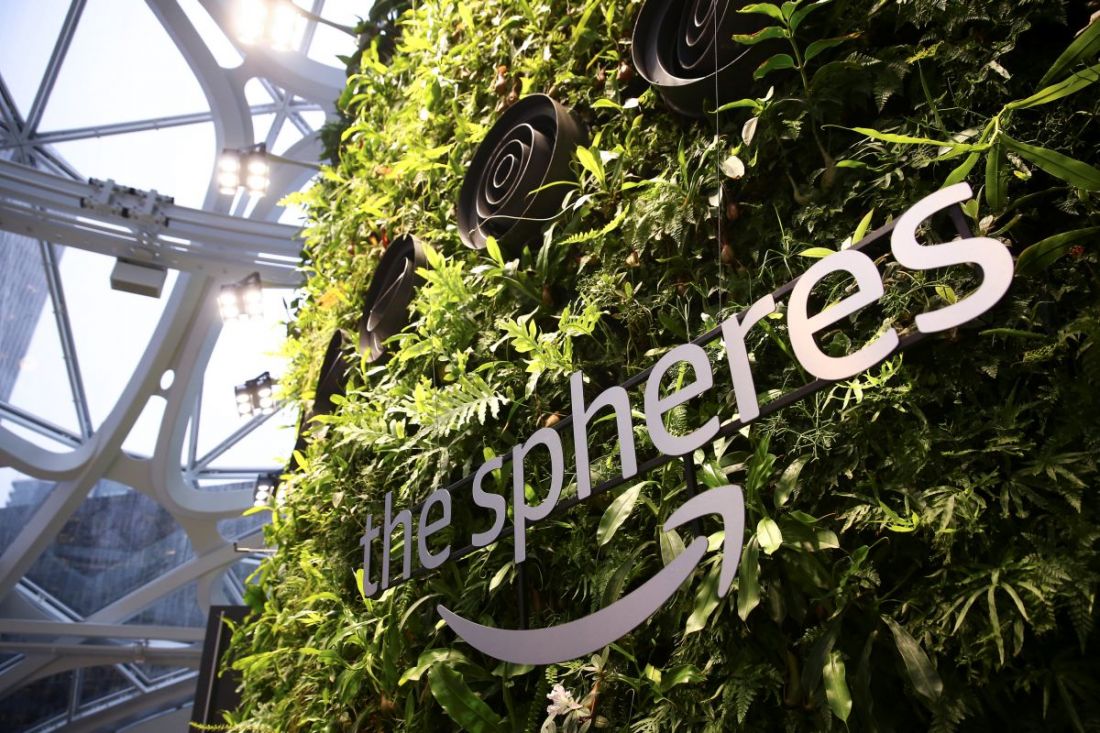 Внутри офиса в виде сфер из стекла постоянно поддерживается 60-процентная влажность, чтобы создать атмосферу леса. Помещения украшают сорок тысяч растений. Руководство компании надеется, что такая рабочая атмосфера повысит производительность сотрудников и позволит им развивать новые идеи.