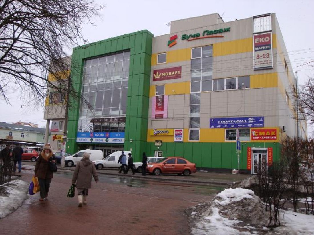 Трехэтажный ТЦ «Буча-Пассаж» общей площадью 9 798,40 кв. м был построен в 2008 году. Он расположен в центральной части Бучи, в ТЦ работают супермаркет «ЭКО маркет», рестораны и магазины различных товарных групп.