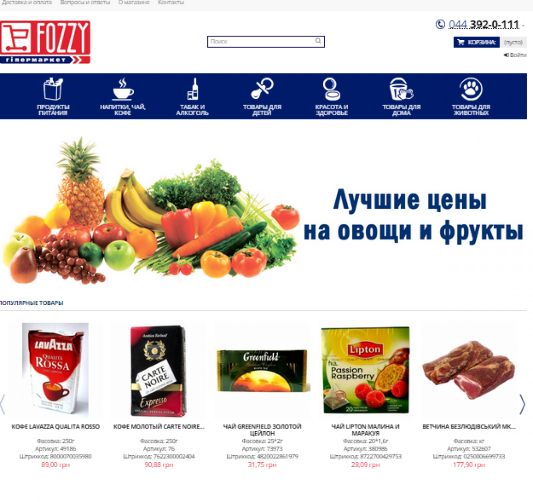 Сеть гипермаркетов Fozzy (группа Fozzy Group, куда также входят сети «Сільпо» и «Фора»), работает над запуском собственного онлайн-магазина, где можно заказать еду, напитки, домашнюю утварь и другие товары. Как удалось выяснить AIN.UA, официально проект еще не запускался — сейчас проходит что-то вроде бета-теста. На данный момент в ассортименте магазина около 15 000 наименований товаров