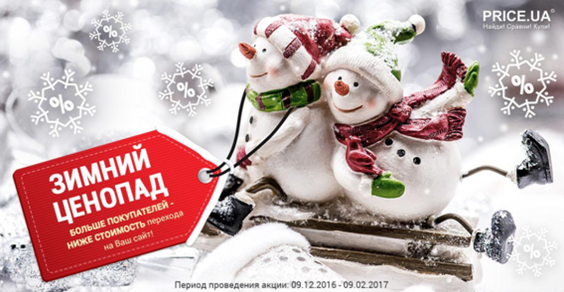 Акция «Зимний ценопад» продлится до начала февраля 2017 года. В ней участвуют как новые магазины (которые никогда не размещали свои товары на Price.ua), так и партнеры, уже имевшие опыт сотрудничества с прайс-агрегатором.
