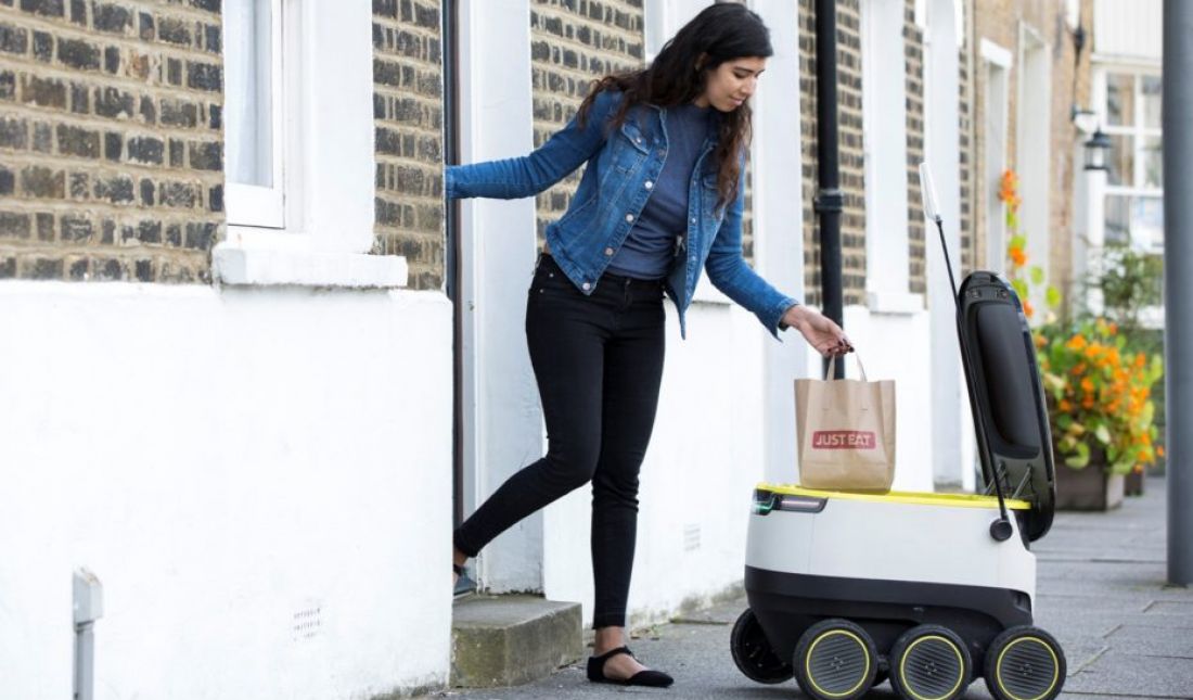 Самоуправляемые роботы доставки Starship привозят два пакета покупок со скоростью четыре мили в час и с радиусом в три мили. Место применения: во всем мире. Дизайн: Starship Technologies.
