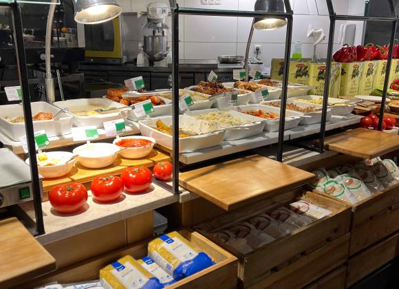 Цього разу вирішили спробувати страви у конкурента “Пузатої хати” (спойлер – трішки перебільшили про конкурентність) – Open. Усі страви тут на вагу – 59 грн за 100 г, набирати потрібно самостійно.