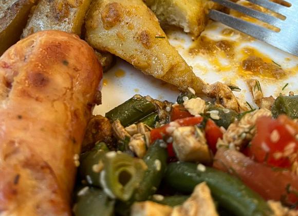 Наш набір страв залишив змішані почуття. У картоплі очікували золотисту запечену скоринку, а отримали щось важке й перенасичене жиром. Загалом враження, що її навіть не запікали – а просто викупали в олії.