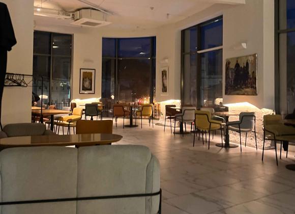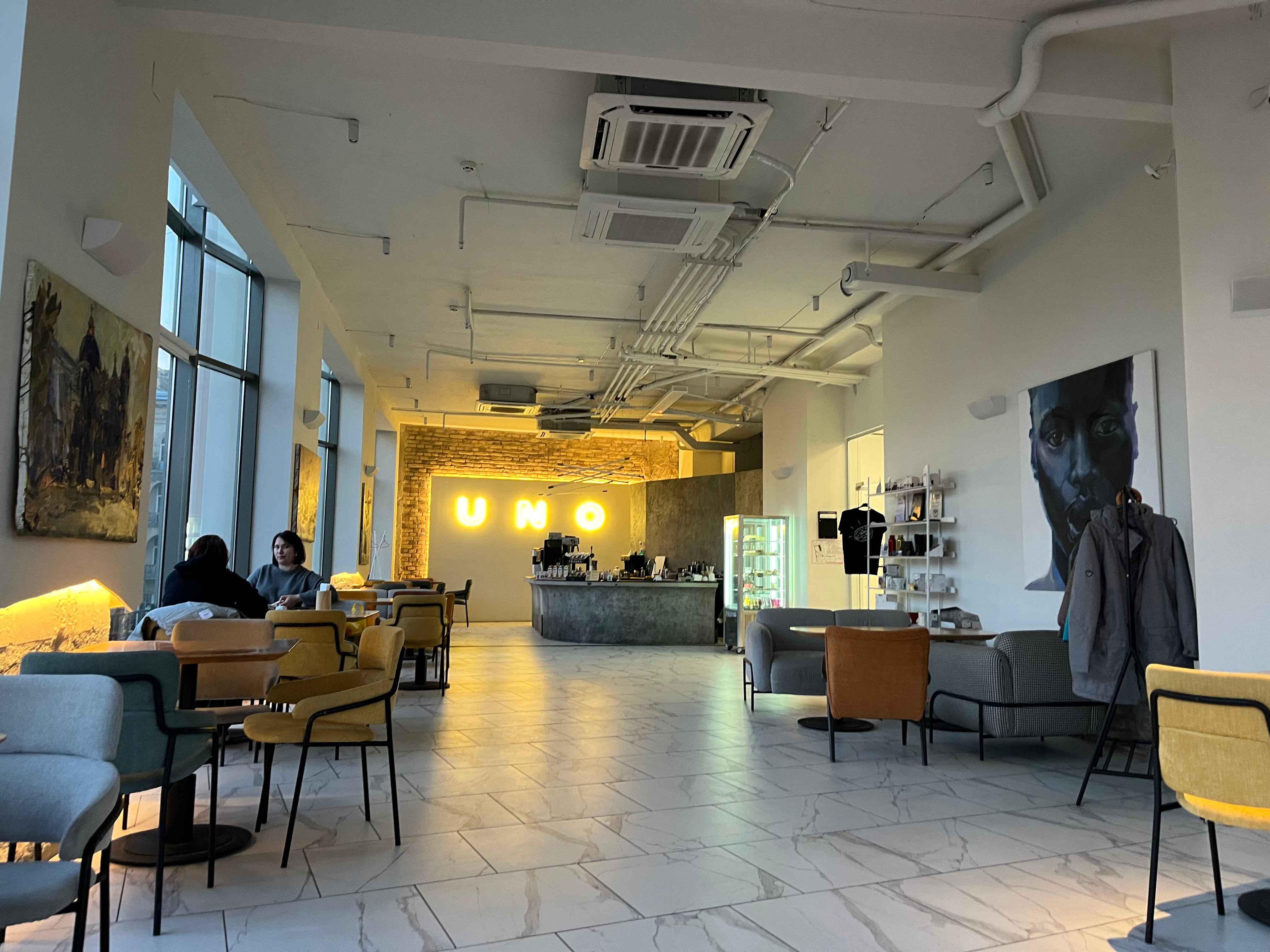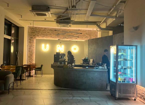 UNO розташований на третьому поверсі. Заклад дуже просторий, має багато місця. Людей практично не було, і вид з вікна відкривається дійсно неймовірний.