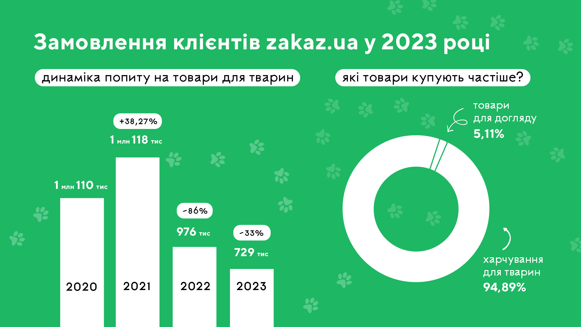 Що стосується коштів: у 2021 році через Zakaz.ua було продано товарів для тварин на суму майже 36 млн гривень, тоді як у 2022 році — на суму понад 23 млн грн. Цьогоріч продажі вже перетнули відмітку у 22 млн гривень, при тому, що кількість проданих товарних позицій менша, ніж минулого року. Таке явище пов'язане зі значним зростанням цін в країні, адже лише тільки корм для тварин підскочив у ціні майже вдвічі.
