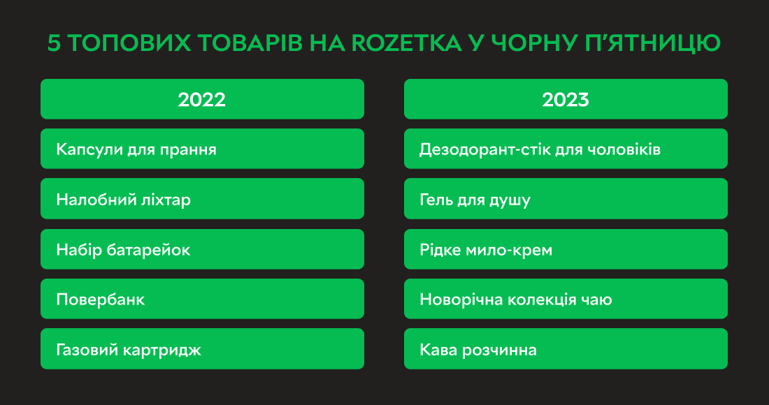 Загалом цього року до Чорної пʼятниці кількість покупців на Rozetka збільшилася на 50%, порівнюючи з періодом до розпродажу, а середня кількість замовлень від одного покупця зросла на 10%.