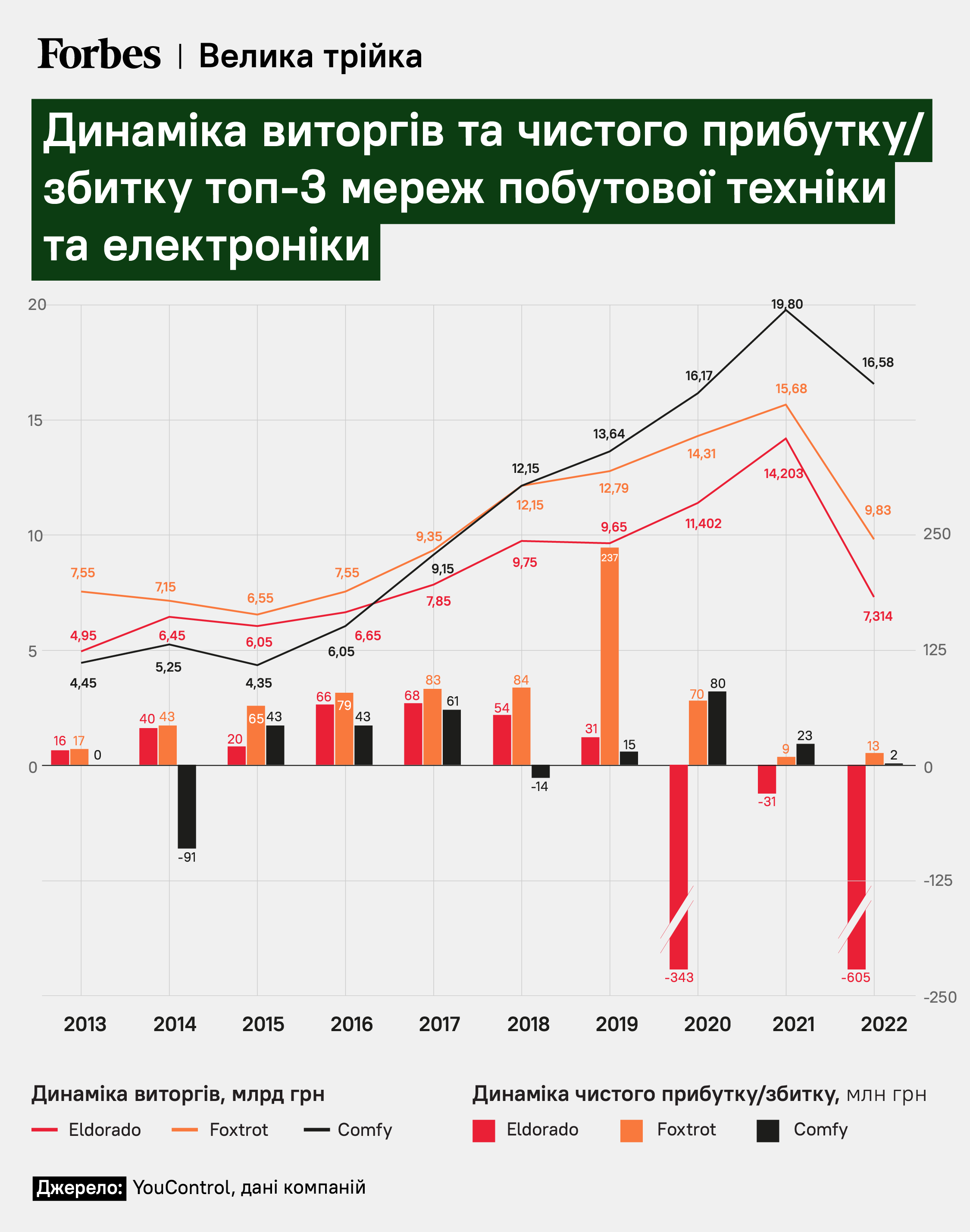Повномасштабне російське вторгнення лише поглибило проблеми Eldorado: за даними фінзвітності у плані санації, копія якої є у Forbes, збитки воєнного 2022 року сягнули 605,9 млн грн.