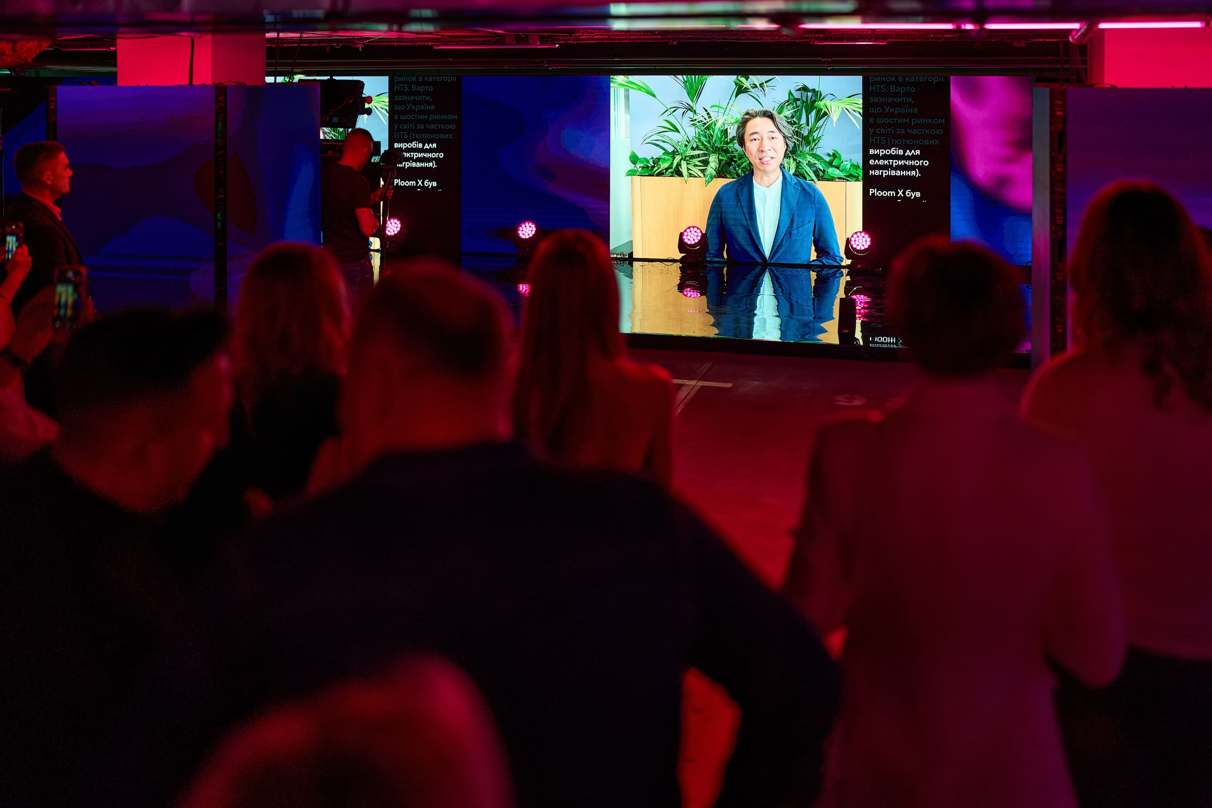 Гостям також продемонстрували адресне відеозвернення Такехіко Тсутсуї, виконавчого віцепрезидента продуктів із потенціалом зниженого ризику компанії JTI. «Ми дуже раді запустити Ploom X Advanced в Україні, адже тут у нього великий потенціал. Ploom X Advanced розроблений і вперше виведений у продаж у моїй рідній країні Японії, де отримав визнання вимогливих японських споживачів. І тепер ми раді представити Україні цей особливий досвід Ploom», – сказав у своїй вітальній промові Такехіко Тсутсуї.