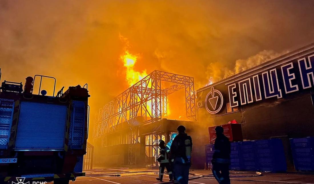 Після перших влучань в торговому центрі спрацювала система пожежогасіння, проте її потужностей не вистачило через високу щільність обстрілу. Відчайдушних зусиль для боротьби з вогнем докладали і співробітники ДСНС, але вони були змушені припиняти роботу через ризик повторних ударів. В результаті торговий центр загальною площею 16 600 кв. м згорів.
