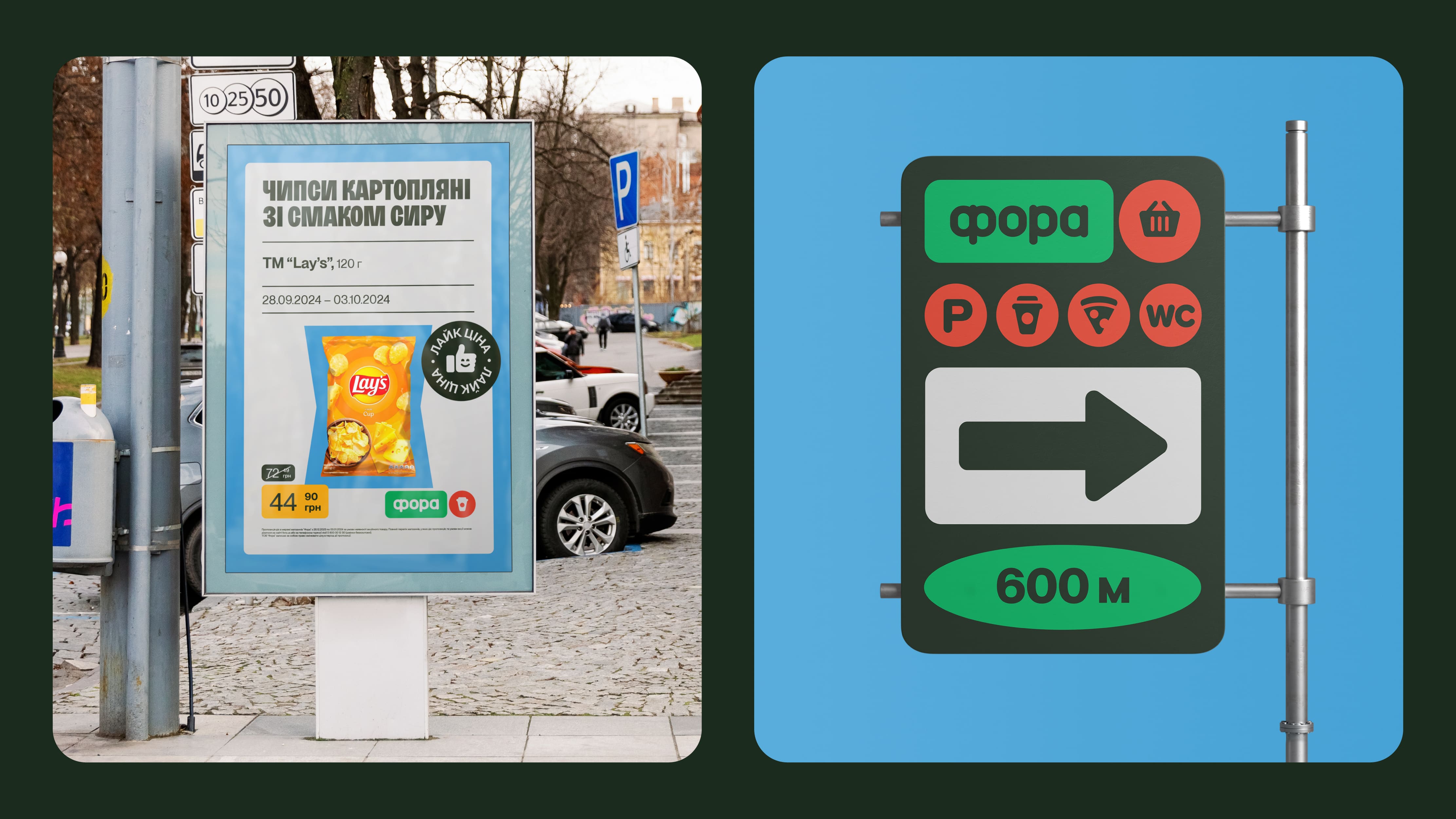 Дизайн мережі мав стати більш сучасним, щоб бути в трендах сьогодення та яскравіше демонструвати бренд «Фора». Taktika оновила айдентику бренду, розробивши нові фірмові елементи. Зокрема, запропонували нові принципи верстки для макетів у всіх каналах комунікацій – від вітрин до соцмереж.