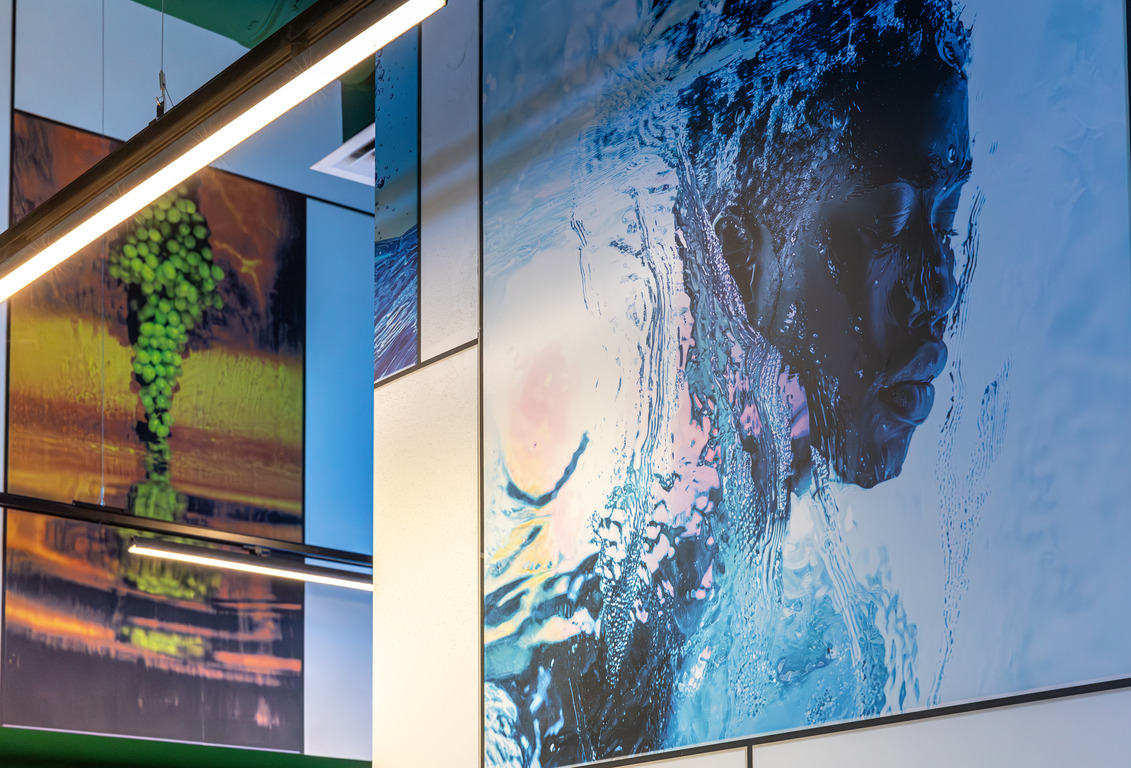 Особливістю нового «Сільпо» стали роботи фотохудожниці Марти Сирко, створені спеціально для цього проєкту. Її знімки прикрашають стіни магазину та додають простору багатошаровості через гру світла, відображень і форм. У своїй роботі Марта використала дзеркала, воду й лід, щоб створити унікальні візуальні ефекти.