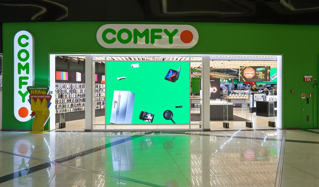 Цифровий простір, Shop in shop із популярними брендами та воронка з екранів із ексклюзивними пропозиціями — COMFY оновив формат флагманських магазинів. Сучасні магазини Digital-формату можна відвідати у трьох торгівельних центрах столиці, а також Вінниці та у Львові.