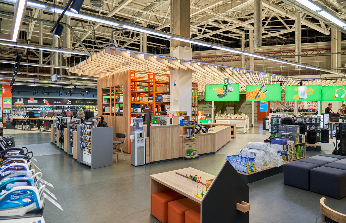 Зона видачі товару та точка видачі інтернет-замовлень розташовані всередині магазину, близько до входу. Усе — через бажання клієнтів швидко отримувати товар, а також зростання онлайну. Завдяки єдиному вікну пікапу та адаптації процесів, клієнт отримує своє замовлення в середньому за три хвилини.