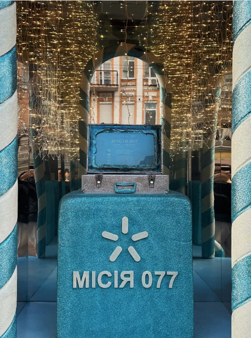Центральний елемент композиції – інтерактив “SMS в майбутнє”: можна надіслати собі повідомлення, яке повернеться за рік. Вартість благодійного SMS – 7,77 грн, усі кошти йдуть на підтримку війська. Також під цю активність Milk Bar створив лімітований десерт у формі кейса “Місії 077”. 50% прибутку з продажу перераховують на спільний збір Київстар та “Повернись живим”.