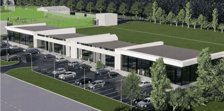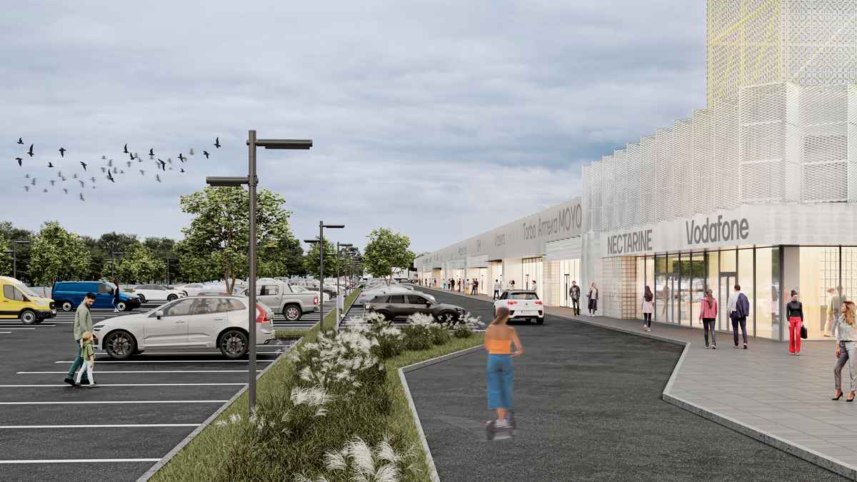Заплановано будівництво у дві черги. У першу побудують основну будівлю ритейл-парку, спортивну зону з футбольним полем, майданчиком для гри в падел. В рамках другої черги будуватимуть допоміжні приміщення. Поряд буде паркінг на 120 місць.