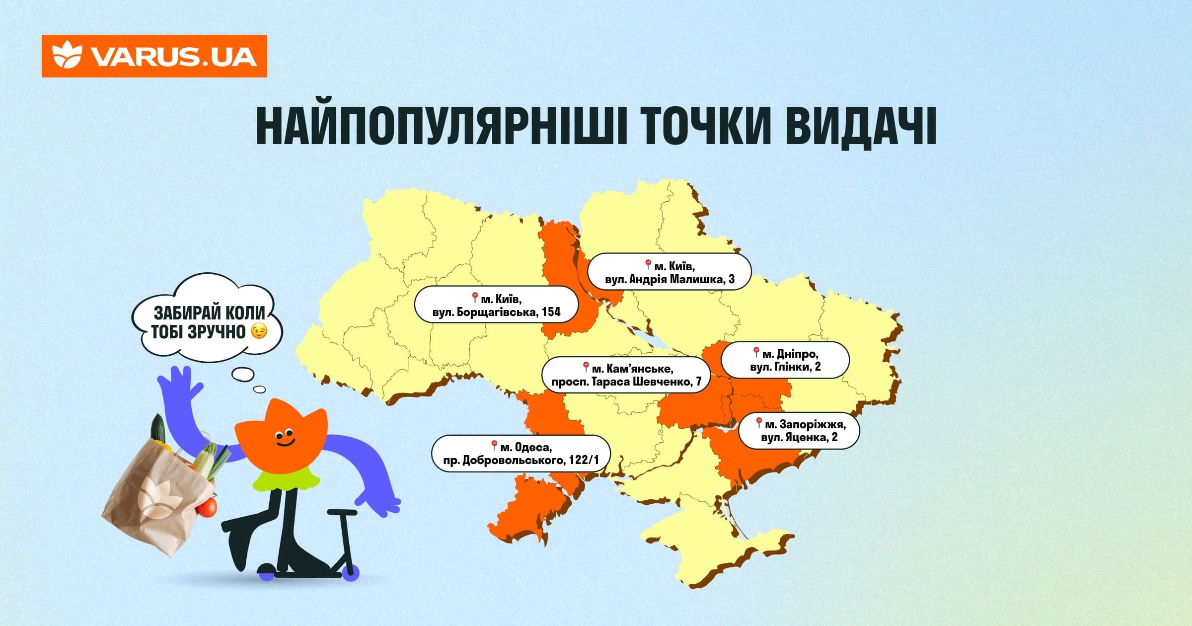 Оскільки на вибір клієнтів впливає ряд обставин, як близькість супермаркету до дому, графік роботи тощо, то не дивує, що кожен магазин має власну статистику. Тож серед усіх маркетів мережі VARUS можна виокремити найпопулярніші точки, з яких замовляють доставку: