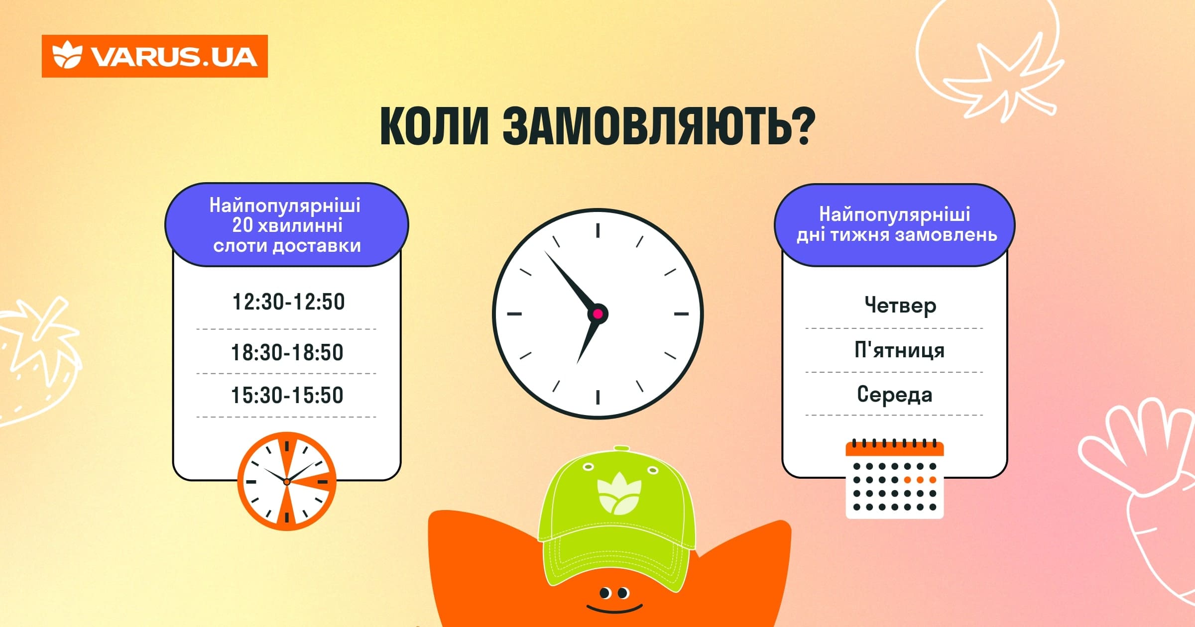Найпопулярніші дні тижня замовлень: вівторок, середа та п'ятниця — тобто робочі дні тижня, в які точно не хочеться витрачати час на додаткові завдання, як то похід у магазин.