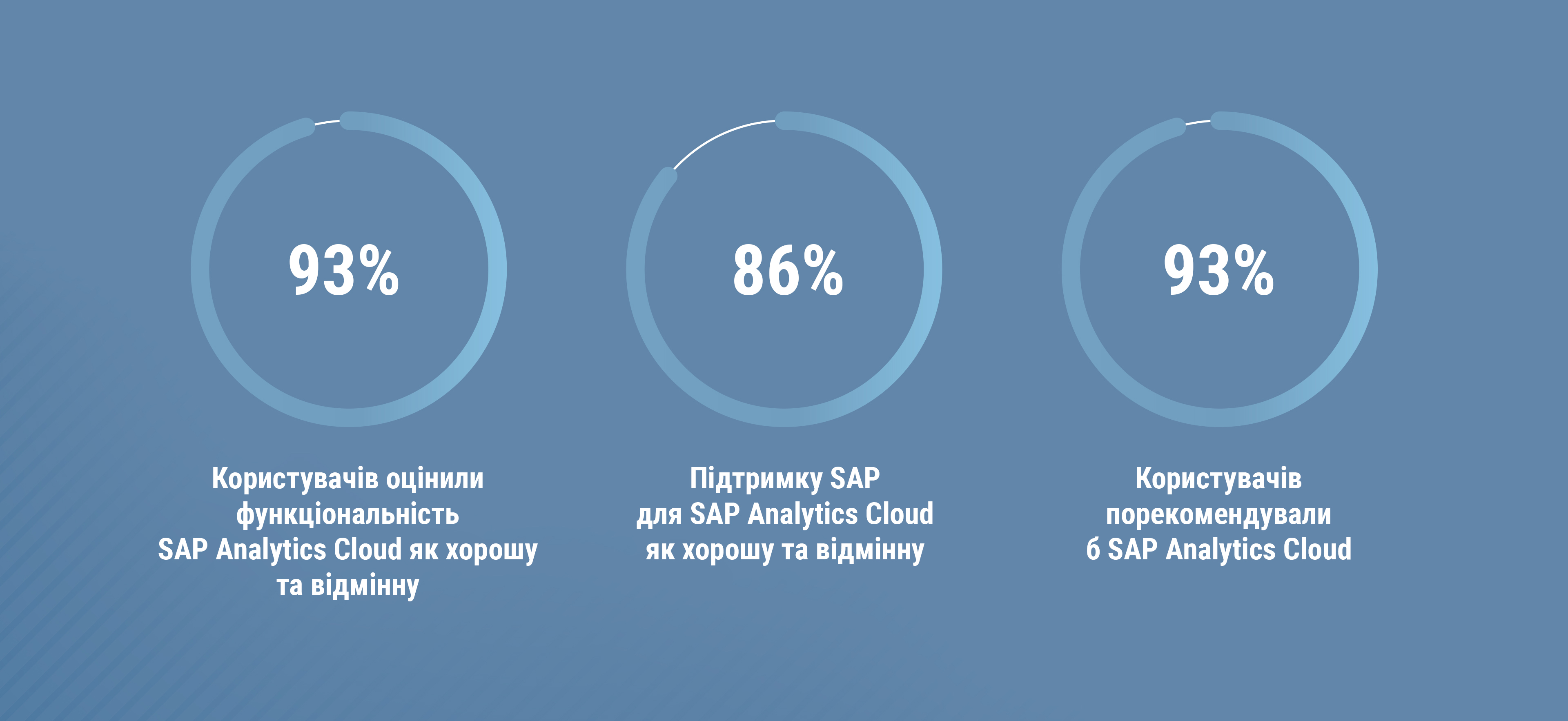 Якщо ви плануєте перейти до інтелектуального підприємства, впровадження SAP HANA із SAP Analytics Cloud це те, що вам потрібно. Згідно з опитуванням BI&Analytics Survey 21, рішення SAP Analytics Cloud зайняло не менше 19 вищих позицій і 21 лідируючу позицію порівняно зі своїми конкурентами.