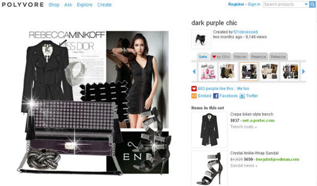 Сам агрегатор Polyvore позволяет пользователям подобраться единый стиль одежды. А одежду и аксессуары из подборки можно купить онлайн в магазинах-партнерах.