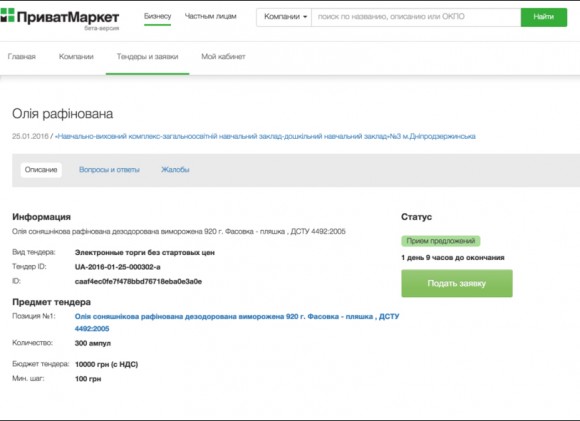 Компаниям предлагается также проводить на площадке тендеры, подавать заявки на участие в тендерах. Причем «ПриватМаркет» интегрирован с ProZorro, так что речь идет в том числе и о государственных тендерах. Можно подписаться на новые тендеры и заявки по email.