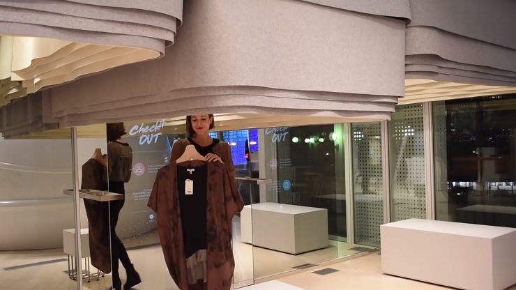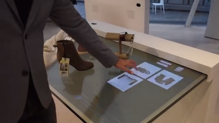 Здесь также есть интерактивные столы, которые умеют определять с помощью RFID-меток товары установленные на них, выдавая клиентам подробную информацию о товаре.