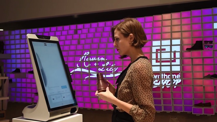 Большие сенсорные киоски позволяют клиентам просматривать расширенный ассортимент обуви, осуществлять поиск и заказ товаров нужного размера и цвета, если нет возможности найти его в этом магазине.