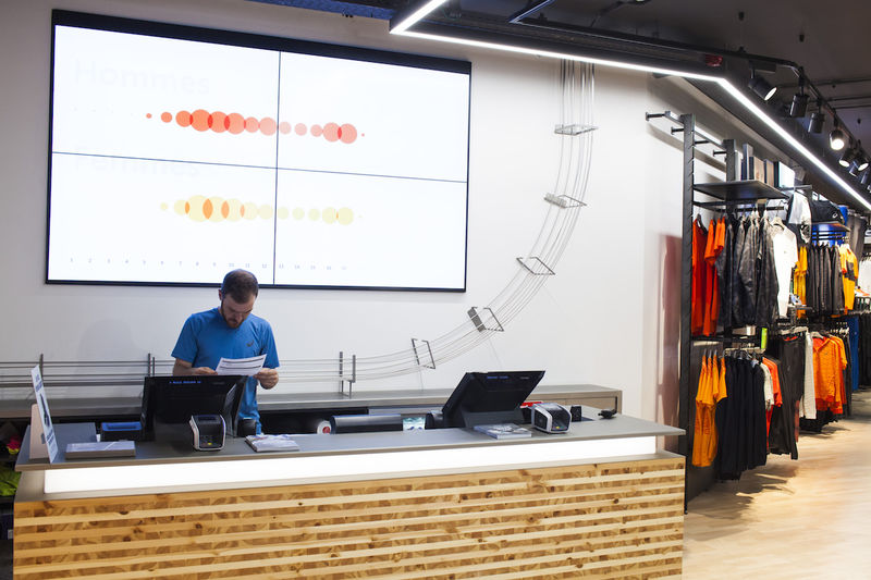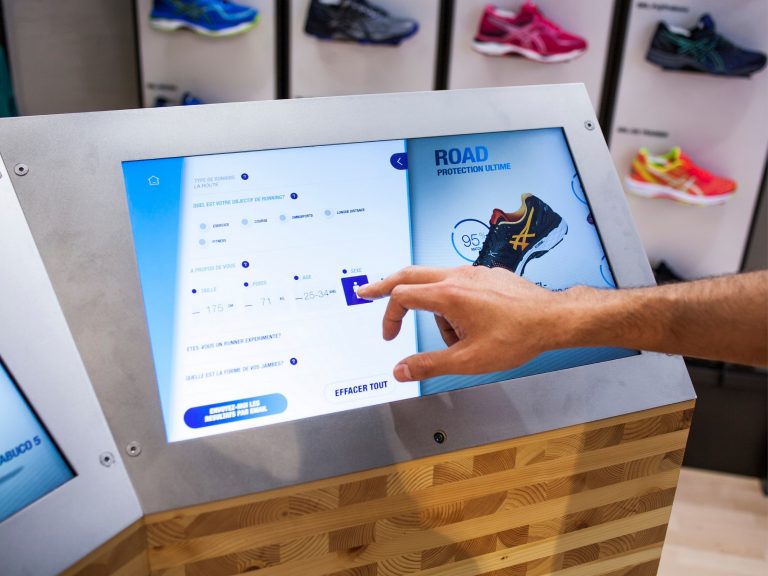 Установленные в магазине динамические рекламные дисплеи и сенсорные ритейл-киоски дают потребителю возможность узнать больше о новых продуктах и подобрать наилучший вариант, а в случае необходимости и связаться с сотрудниками ASICS.