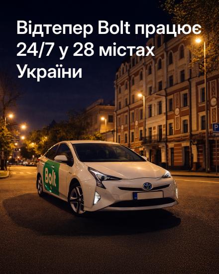 Bolt став працювати цілодобово у 28 містах: список