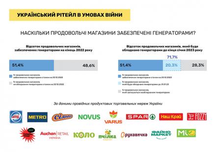 Асоціація рітейлерів України: половина продовольчих мереж забезпечена генераторами