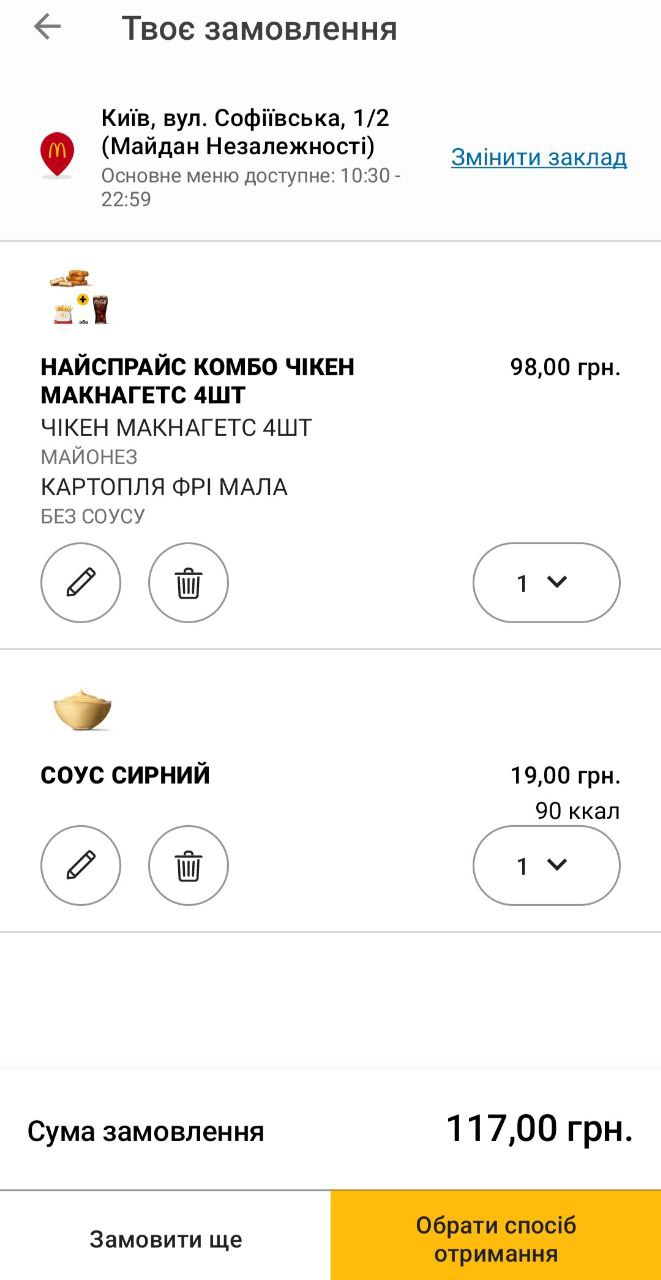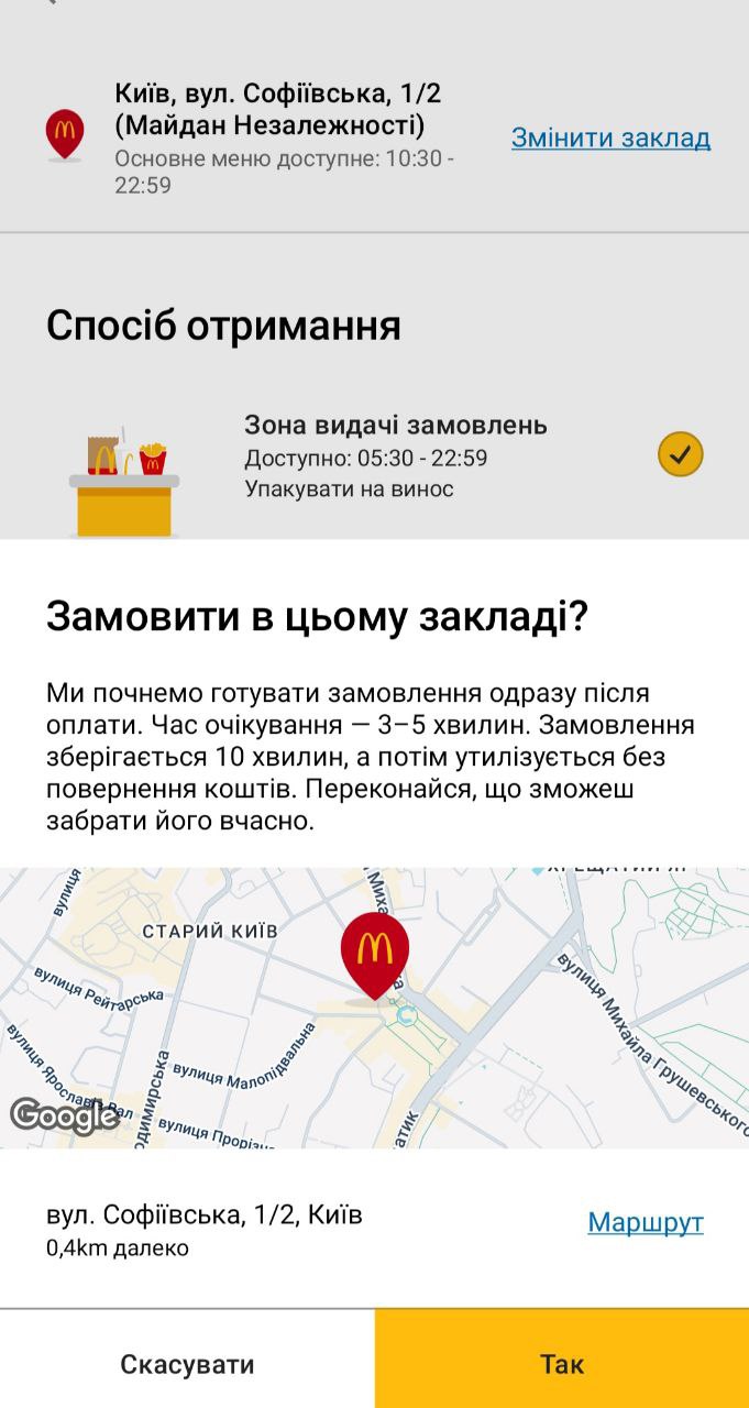 Я живу в районі НАУ, тому обрала McDonald’s біля Майдану Незалежності. І, як виявилося, недарма щось підказувало, що не варто оформлювати замовлення ще вдома. Інтуїція мене вкотре не підвела!
