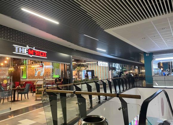 Найбільше виділився заклад The Мʼясо: великий простір, проте відкриті і скляні двері – відтак відкривається вид на весь ТРЦ. Назва говорить сама за себе: ресторан пропонує мʼясні страви. Це бургери, стейки, шашлики, котлети тощо. Звісно, від цього ціни вищі, ніж на загальному фудкорті. Проте якщо прийти у будні з 12:00 до 14:00, то заклад пропонує комплексні обіди лише за 260 грн.