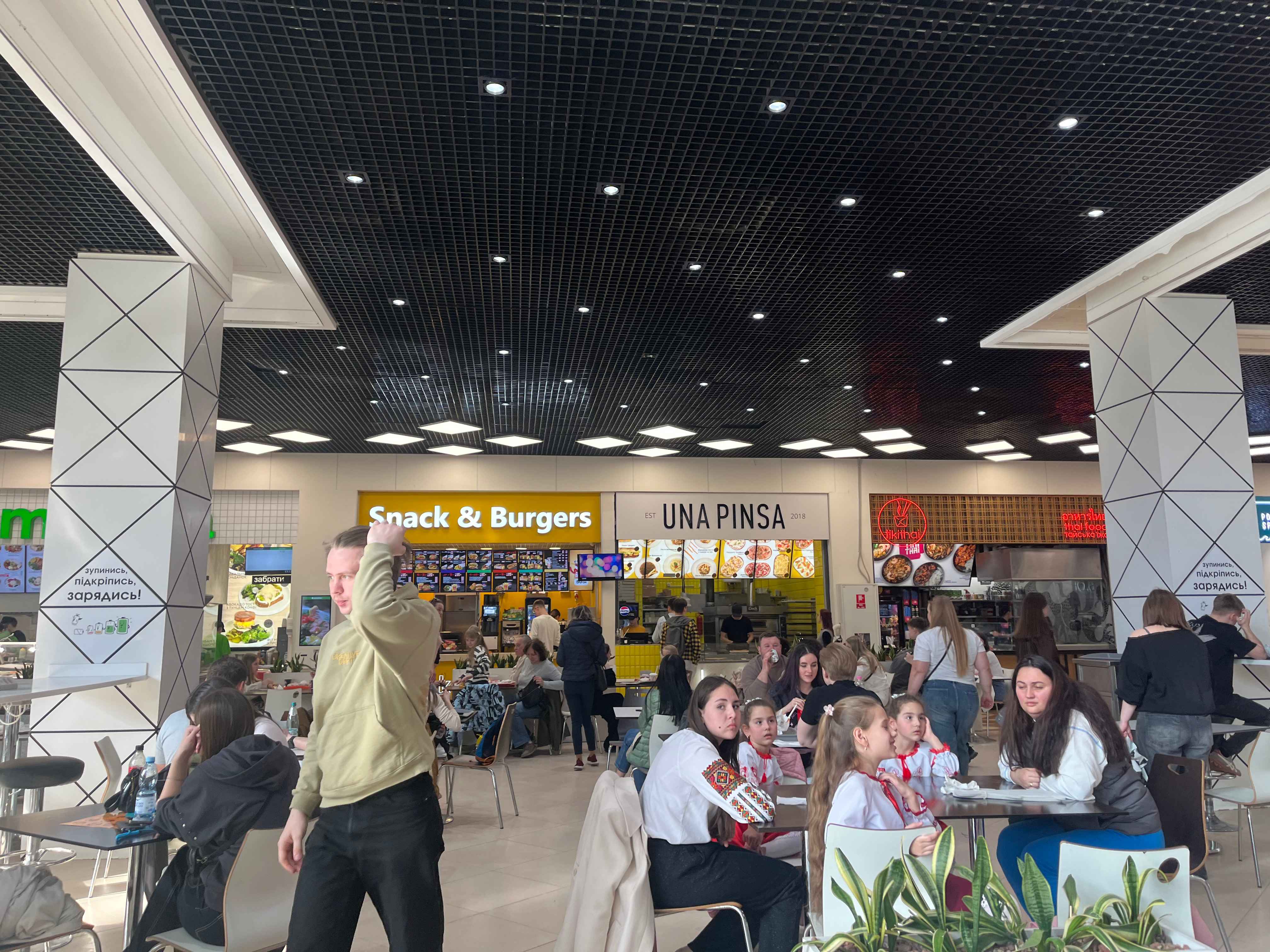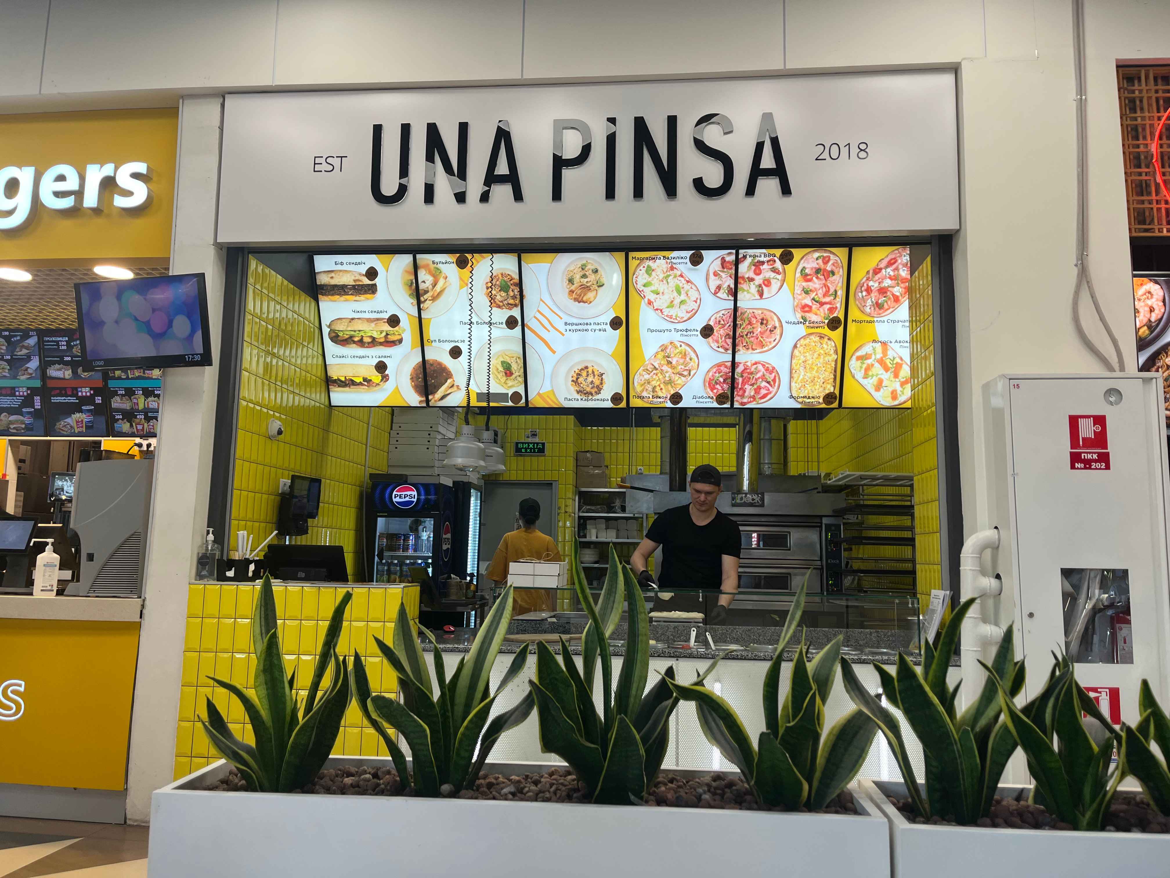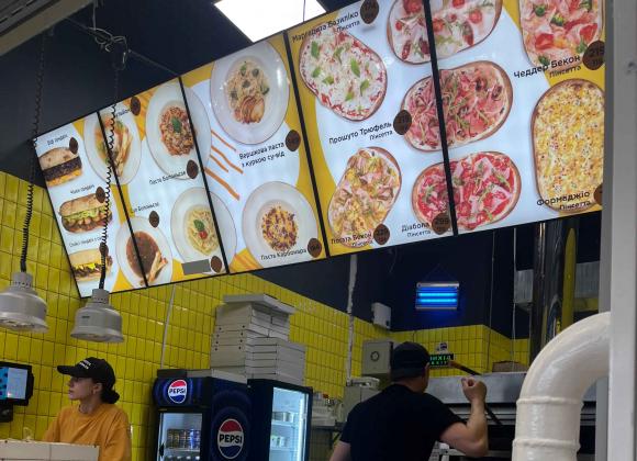 Серед пропозицій – бургери, кебаби, Avocado, тайська їжа, McDonalds, піцерія, "Львівська майстерня шоколаду" та інші. Нас зацікавив заклад UNA PINSA з римською квадратною піцою – пінсою.