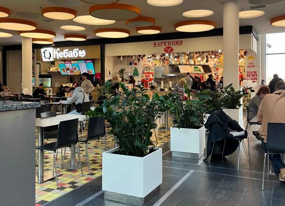 Попри своє ідеальне розташування фактично в центрі міста, вибір на фудкорті не такий і великий: кілька закладів із десертами, МакДональдс, хінкальня, "Сушия", "Львівські круасани", "Кебабця", Poke Lulu з азійською їжею і варенична.