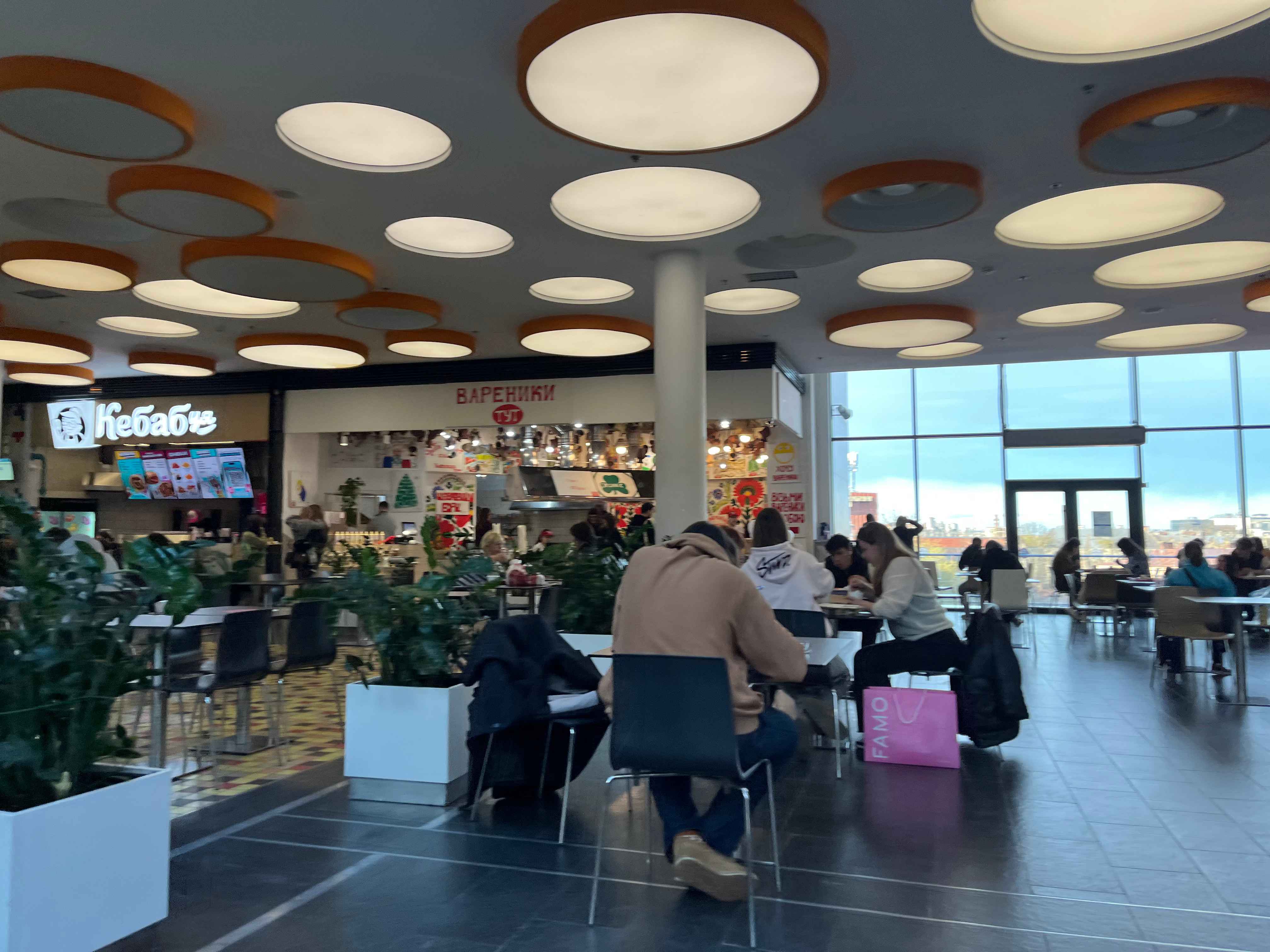 Столик на загальному фудкорті знайшли швидко, і він був чистий. Пощастило – тому що одразу звільнився сусідній, і поки ми їли – його не прибрали.