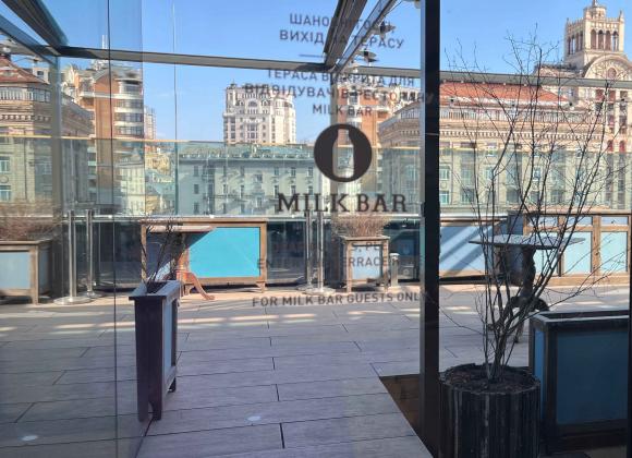 Фінальною точкою нашої ревізії став Milk Bar, який знаходиться поверхом вище за попередні заклади. І одна з головних його фішок — тераса з панорамним видом на Хрещатик, яка відкриється вже 1 квітня.