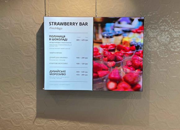 У Strawberry Bar / Fresh&Go пропонують полуницю в шоколаді за 629 грн, а також хайпове дубайське морозиво за 549 і 289 грн.