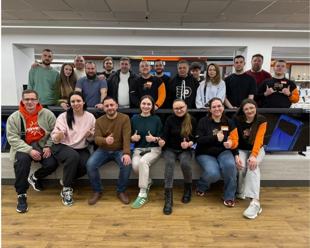 У торгових залах облаштовано клієнтські хаби, де покупці можуть отримати онлайн-замовлення, швидко оформити покупку або звернутися за сервісною консультацією. Окрім того, кожен продавець має доступ до внутрішнього застосунку FoxyHub, завдяки якому може оперативно видавати замовлення, приймати оплату та надавати додаткову інформацію.