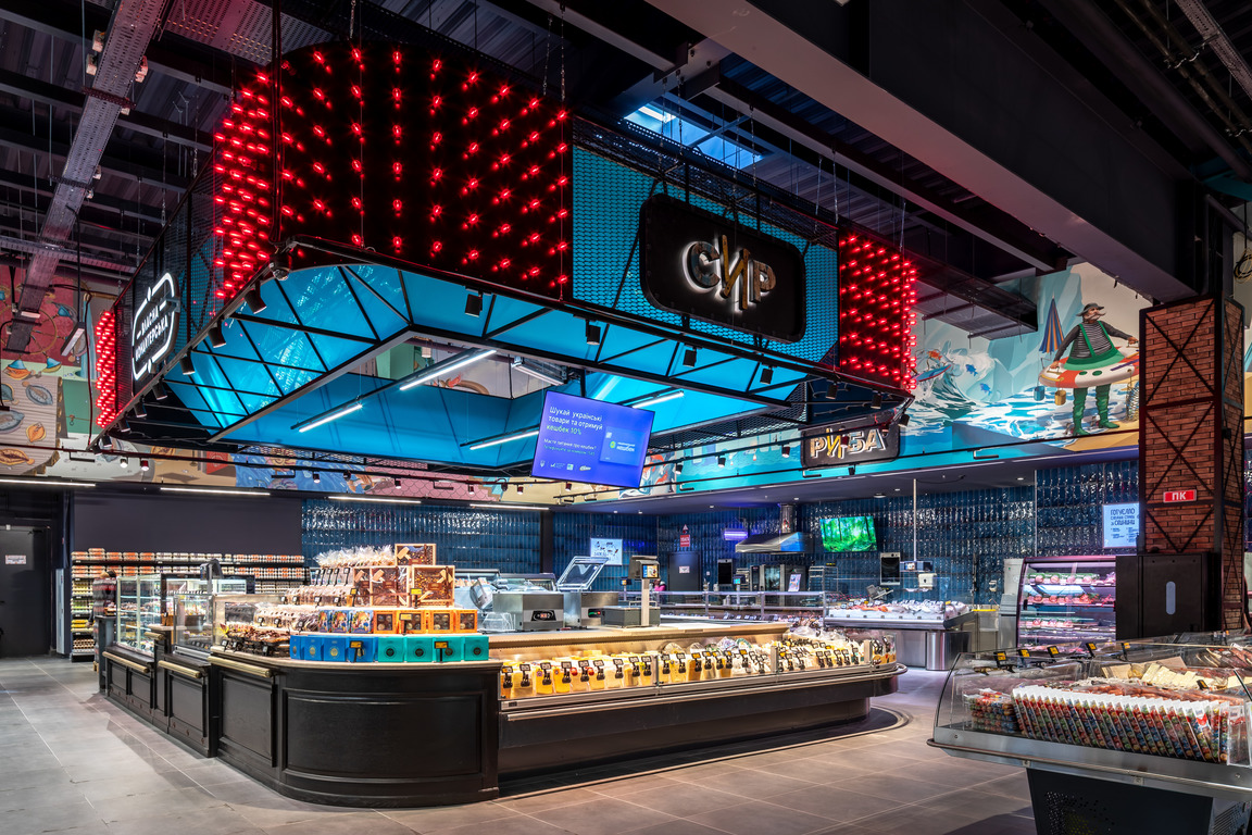 Команда «Сільпо» поєднала в дизайні магазину стімпанк і лофт: цегла, метал, зістарене дерево й бетон. Супермаркет площею 1368 кв.м наповнений незвичними предметами, які ніби балансують на межі функціональності й творчого хаосу.