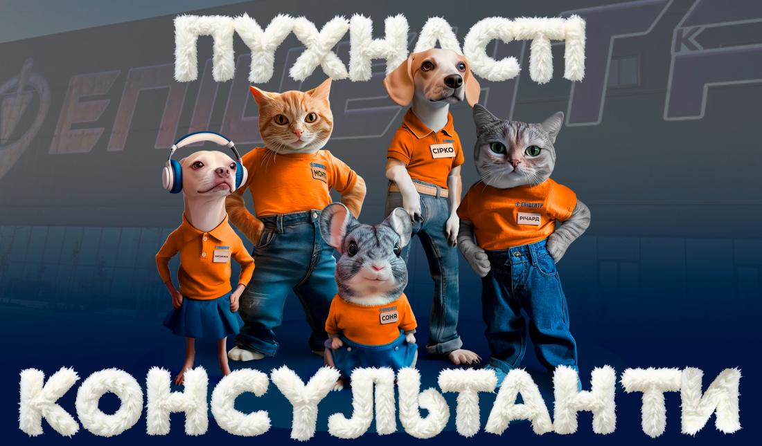 У торговому залі встановлені ростові фігури «пухнастих консультантів» - домашніх тварин мобілізованих працівників: котів Річарда і Монті, собак Сірка і Бусинки, а також шиншили Соні. На кожній фігурі - персональний QR-код. Скануючи код, клієнт отримує набір опцій для вирішення свого питання: