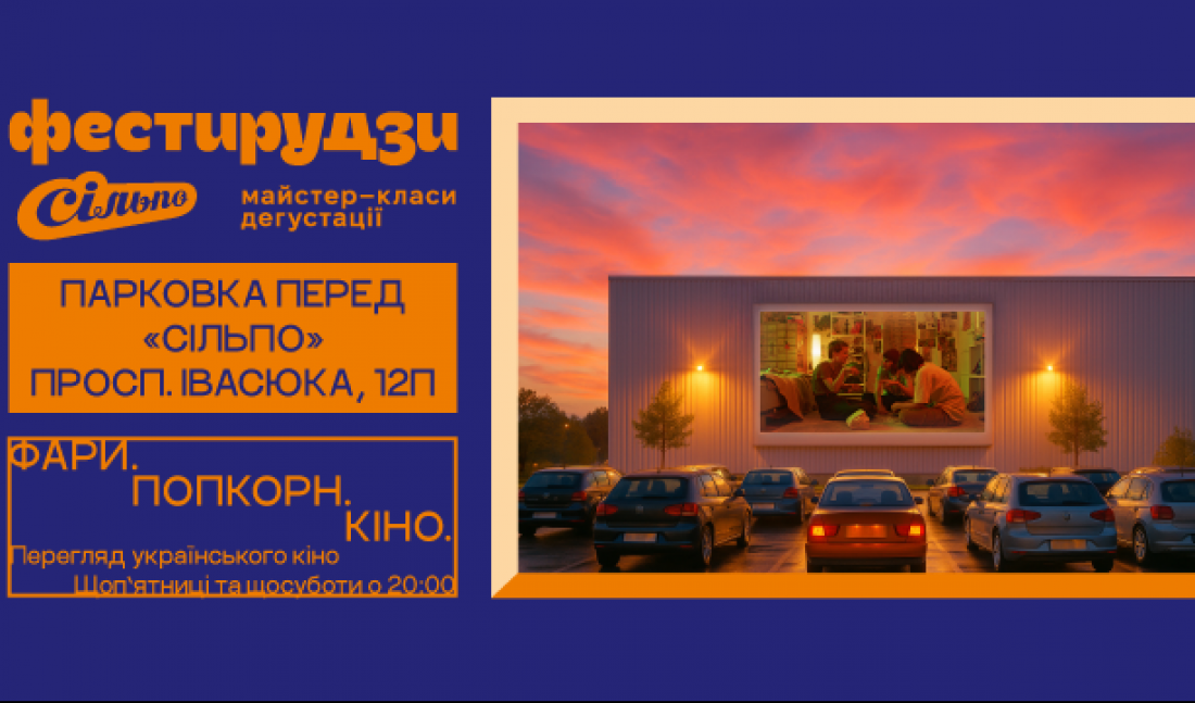 Щоп’ятниці та щосуботи на парковці «Сільпо» транслюватимуть найкращі українські кінострічки — від класики до сучасності. Відкриття сезону відбудеться 28 червня з показу документального фільму про українську музику 1970-х — «Вусатий Фанк».