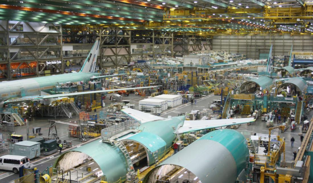 Boeing employees building Boeing 777 jets at its Everett factory. Credit: First Class Photography/Shutterstock.com