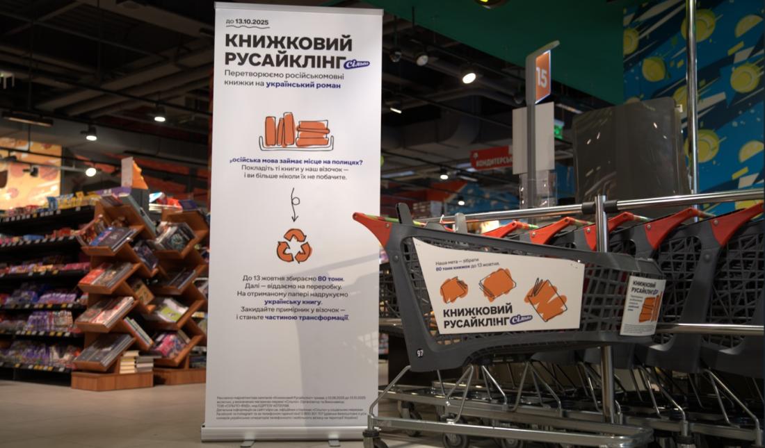 У магазинах «Сільпо» з’явилися спеціальні візочки з позначкою «Книжковий русайклінг». Саме сюди можна покласти книжки російською — будь-якого жанру і в будь-якому стані. Мета ініціативи — зібрати 80 тонн російськомовних книжок.