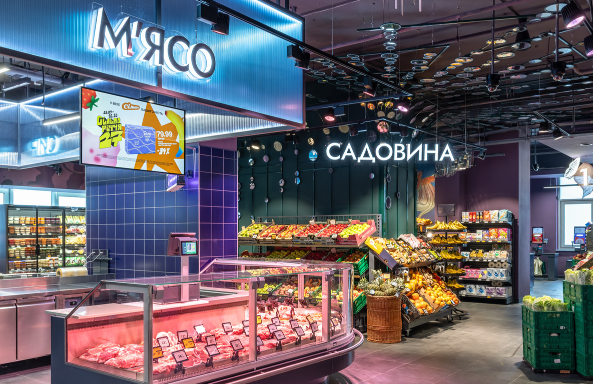 Для колірної палітри магазину вибрали глибокі відтінки фіолетового із зеленими, теракотовими та молочними акцентами. Полиці оновленого «Сільпо» потішать Гостей ароматною випічкою, свіжою городиною та садовиною та широким вибором м’яса. Також на локації розмістили Silpo Point — місце видачі онлайн-замовлень «Сільпо», MAUDAU та інших партнерів.